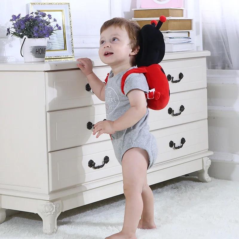 Cute cartoon baby head protector backpack made with soft cotton protective cushioning. Designed specifically for babies learning to walk and crawl, providing gentle security while encouraging natural development and exploration.